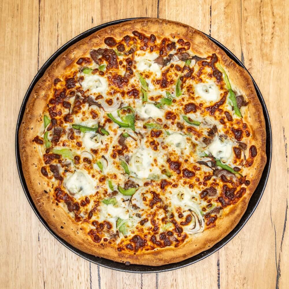 Tomato base, cheese, Hellmann’s mayonnaise, bacon, beef, chicken, BBQ sauce