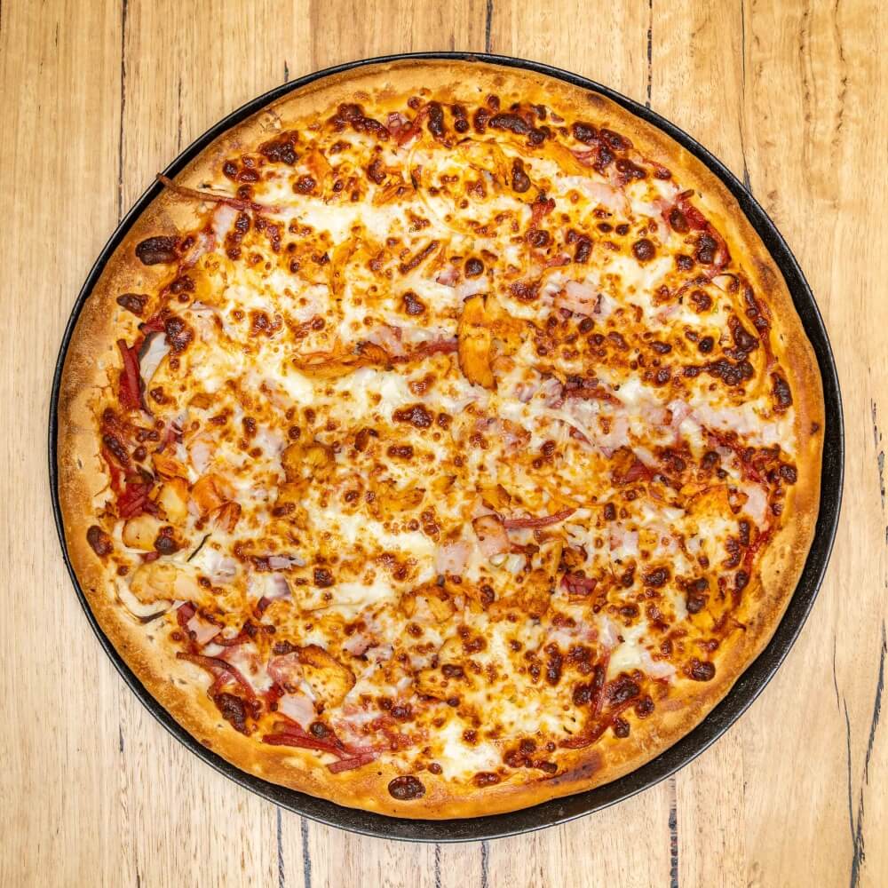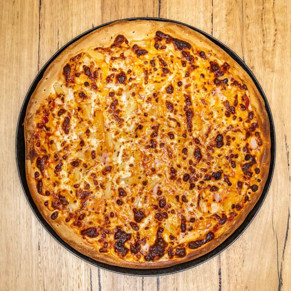 Tomato base, cheese, bacon, chicken, pineapple, sweet chilli sauce